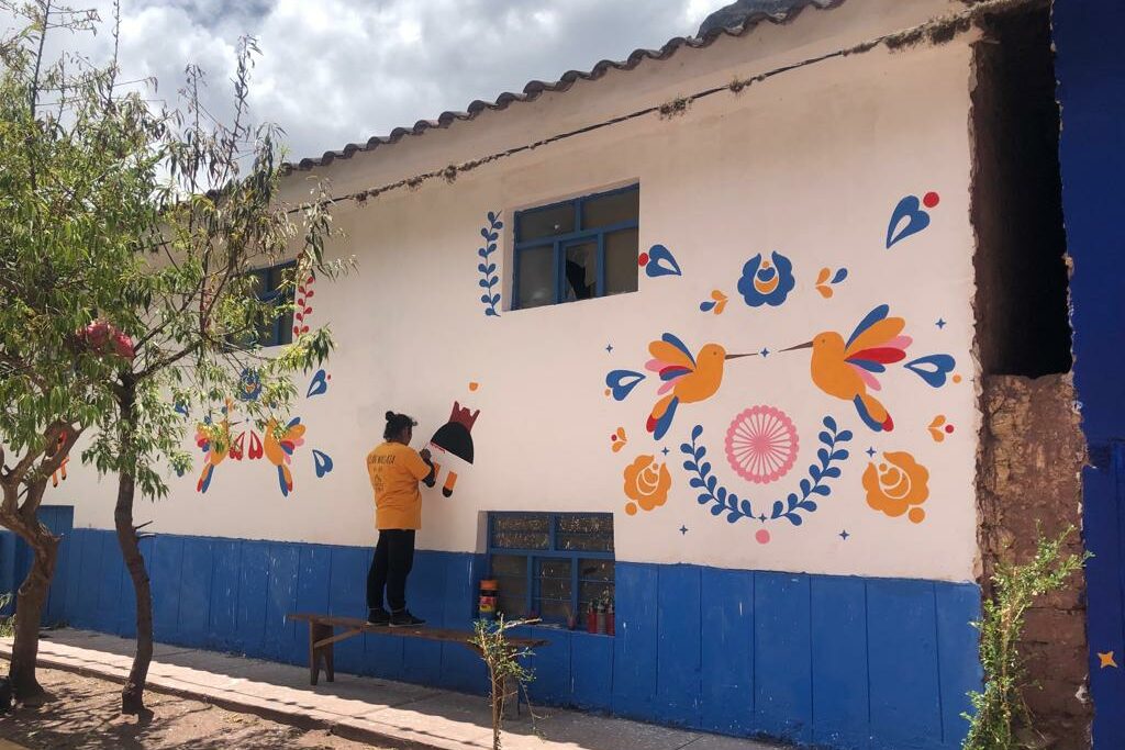 The Project – In 2023, Turismo Cuida launched Pachar Pueblo Mural in the district of Ollantaytambo (Cusco), transforming 34 homes and the local church into murals that tell stories of ancestral agriculture, Andean cosmovision, and cultural resilience.